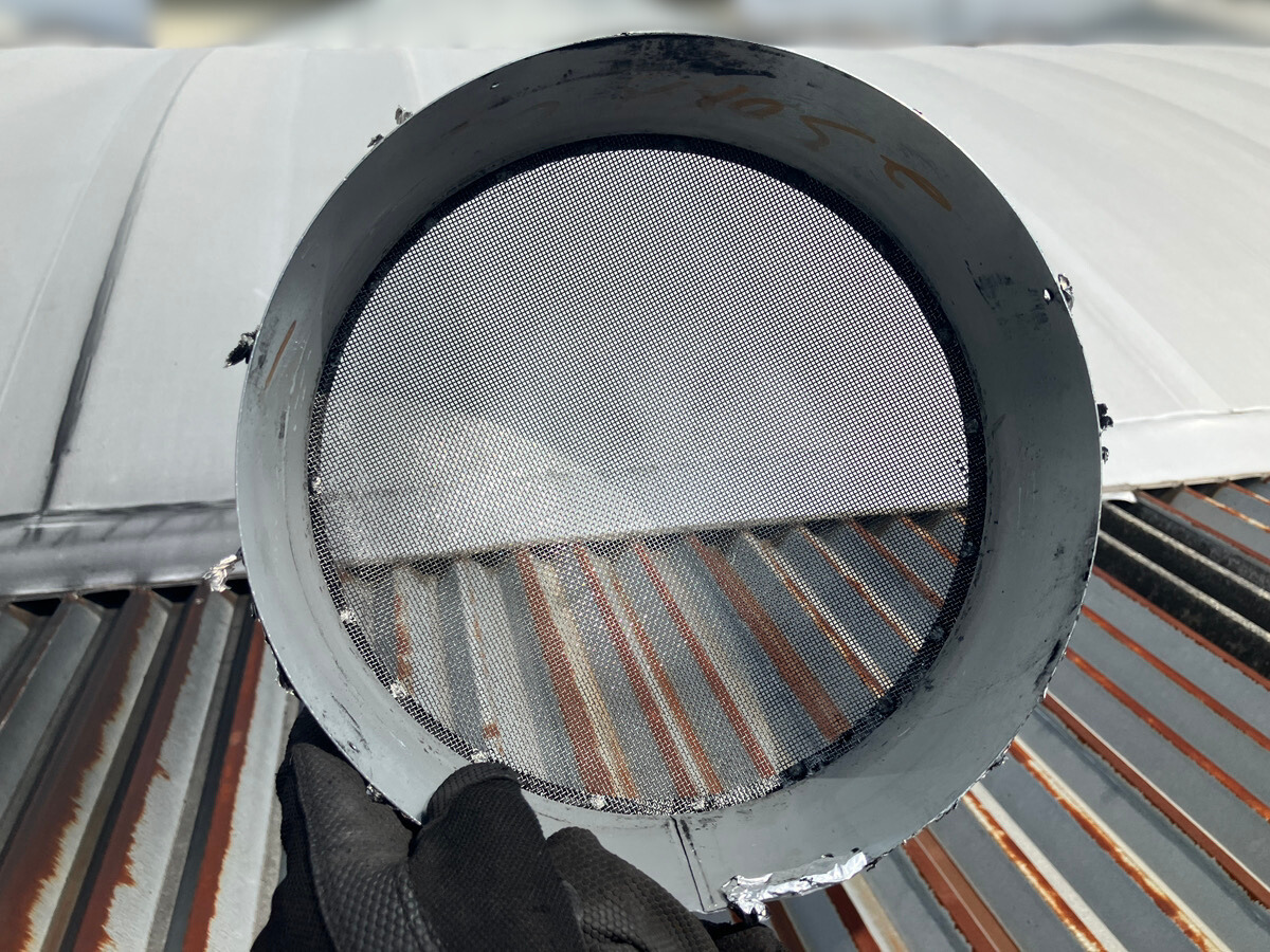 実際に現地調査を行った結果、屋外吹き出し口に粉じんやゴミが付着して目詰まりを起こしていることが判明しました。