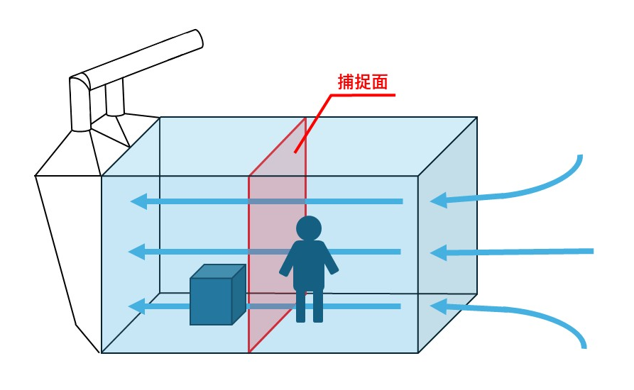 これは密閉式の作業場内に垂直の捕捉面を設定し、水平な気流で有害物質を捕捉する換気装置です。
