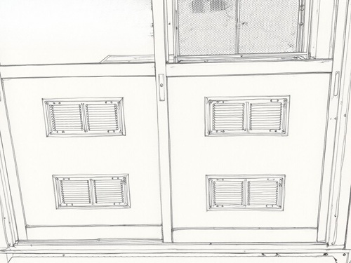 ③コンテナハウス内の給排気のバランス確保のため引き戸に給気口を設置しました。
